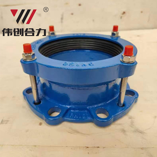 法蘭鬆套伸縮接頭由本體、壓蓋、密封圈和緊固件組成,它采用和壓蓋鬆套伸縮接頭相同的密封原理,連接方式一端為法蘭連接,另一端為承插連接,適合閥門等設備與管道的連接。連接的同時能補償管道的軸向位移及一定量的撓曲和偏心,從而保護閥門等設備。承插口同樣適合與鋼管、鑄鐵管、球墨鑄鐵管、PAC管、ABS管等連接。